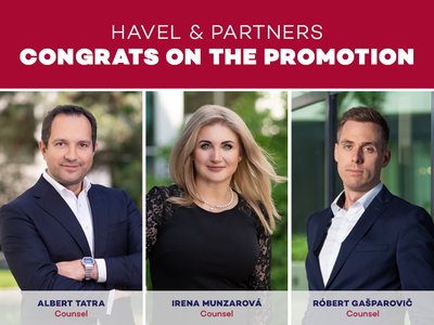 HAVEL & PARTNERS will internally promote a total of 19 legal and tax professionals as of 1 April. Róbert Gašparovič, Irena Munzarová and Albert Tatra will be promoted to the position of Counsel effective April.